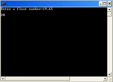 مکانیسم:روش کار این برنامه به این صورت است که عددی را از ورودی می خواند و جزء صحیح آن را داخل متغیر دیگری قرار می دهد و با به دست آوردن اختلاف عدد اصلی و جزء صحیح آن مقدار جزء اعشاری را به دست می آورد و بعد از آن جزء اعشاری را بررسی می کند اگر از 0.5 بزرگتر بود یک واحد به جزء صحیح اضافه می کند و نتیجه را چاپ می کند ، اگر از 0.5 کمتر بود جزء صحیح را به تنهایی چاپ می کند و اگر برابر 0.5 بود،عدد اصلی را چاپ می کند.